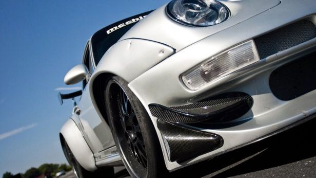 Wóz otrzymał koła z nowymi wieloramiennymi felgami o średnicy 18”. Mają one szerokość 10,0” z przodu i 13,0” z tyłu. Koła mieszczą się pod szerokimi nakładkami przymocowanymi do błotników. O ile przednie nakładki być może pochodzą z seryjnego GT2, to tylne są nieco szersze niż te produkowane przez Porsche.