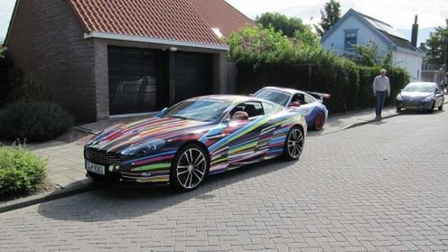 Samochód został przyłapany w Holandii i najprawdopodobniej weźmie udział w tamtejszym wyścigu The Challenge 2010, który ma miejsce pod koniec bieżącego miesiąca. Wygląd DBS Carbon Black jest... co najmniej kontrowersyjny. Najprościej rzecz ujmując wyjątkowość designu polega na jego przejrzystości - Jeff Koons zwyczajnie pobawił się kolorami tworząc wesoły projekt na wzór mozaiki. Radosne barwy nadają pojazdowi bardzo przyjaznego charakteru.