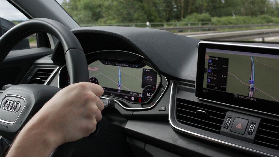Audi Q5, którym pokonujemy trasę, wyposażone jest między innymi w ogranicznik prędkości. Po jego uruchomieniu i zadaniu wybranej wartości system nie pozwala na jej przekroczenie nawet jeśli przyciskamy pedał przyspieszenia zbyt mocno. Dociśnięcie go do podłogi sprawia jednak, że samochód automatycznie wyłącza asystenta. To zabezpieczenie, które umożliwia ucieczkę w razie niebezpiecznej sytuacji.