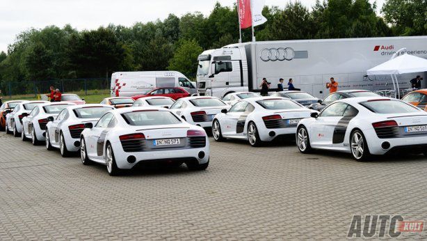Wtorek, godzina 8:30, wjeżdżam przez bramę Toru Poznań na specjalnie przygotowany plac wypełniony nowymi Audi RS4 Avant, RS6 Avant i R8 V10 w wersjach Plus i GT - każdego modelu sztuk kilkanaście. Między samochodami kręci się obsługa imprezy oraz inni zaproszeni goście. Słychać dźwięki migawek i podekscytowane głosy. Nieczęsto widzi się tyle sportowych samochodów obok siebie. Dookoła szerokie uśmiechy - każdy zdaje sobie sprawę z tego, że za kilkadziesiąt minut będzie siedział za kierownicą, i bynajmniej nie samochodu, którym tutaj przyjechał.