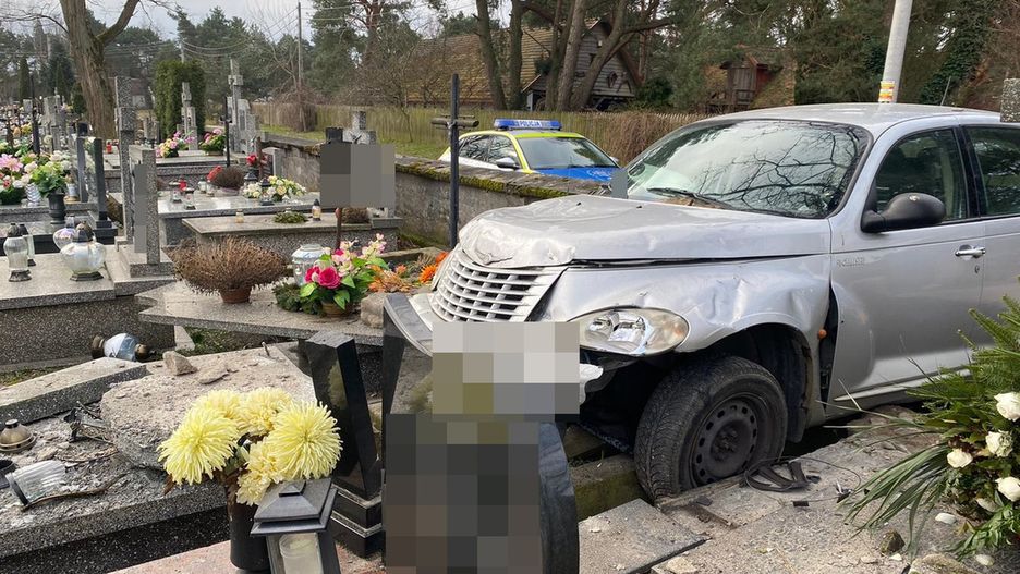 Jak udało się ustalić, nieznany mężczyzna wjechał w ogrodzenie cmentarza, przebił je, a następnie zatrzymał się na kilku nagrobkach. Następnie porzucił pojazd i oddalił się z miejsca.