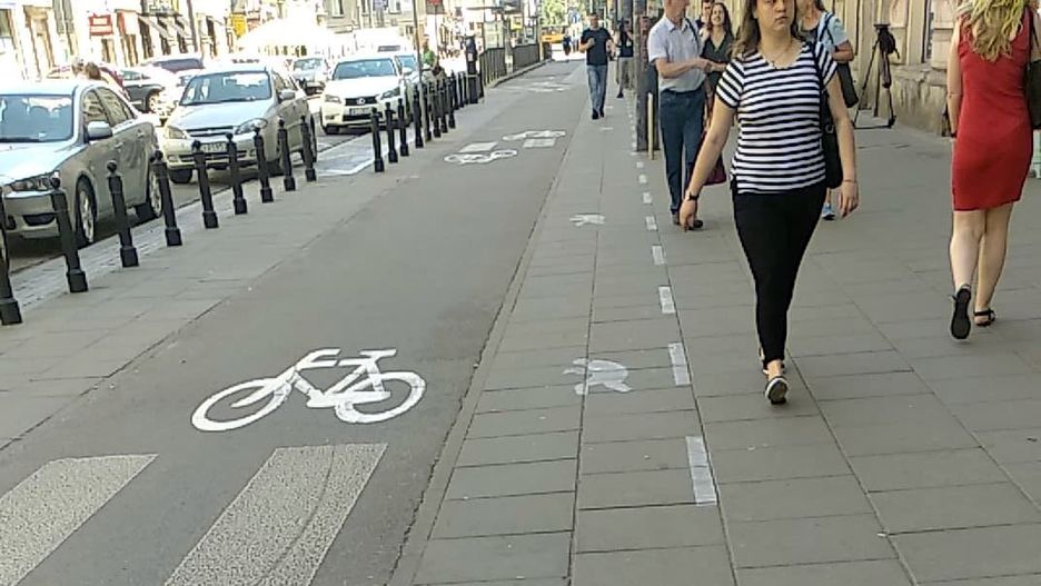 Chodnik dla zapatrzonych w telefony. W Warszawie pojawiło się dziwne oznaczenie