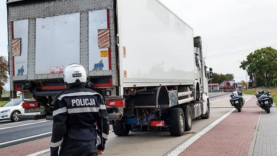 5 października świebodzińscy policjanci otrzymali zgłoszenie dotyczące nietypowego transportu poruszającego się trasą S3. Świadkowie informowali o ciężarówce przewożonej na ciągniku siodłowym. Na miejsce wysłano patrol motocyklistów, którzy szybko namierzyli podejrzany pojazd.