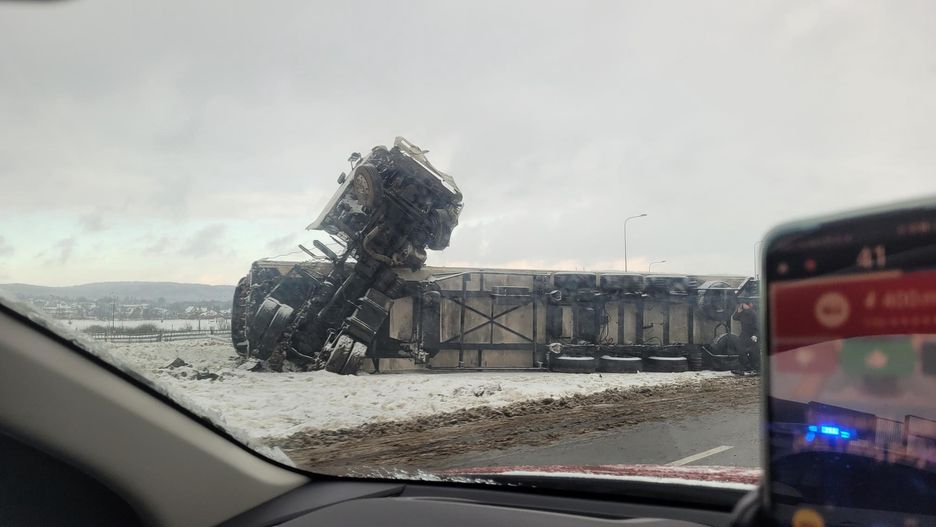 W nocy z poniedziałku na wtorek (12/13 grudnia) miejscowości Tokarnia w województwie świętokrzyskim ciężarówka zjechała na pas rozdzielający jezdnie i przewróciła się. Pojazd blokował lewy pas ruchu w kierunku Kielc. Nikomu nic się nie stało.