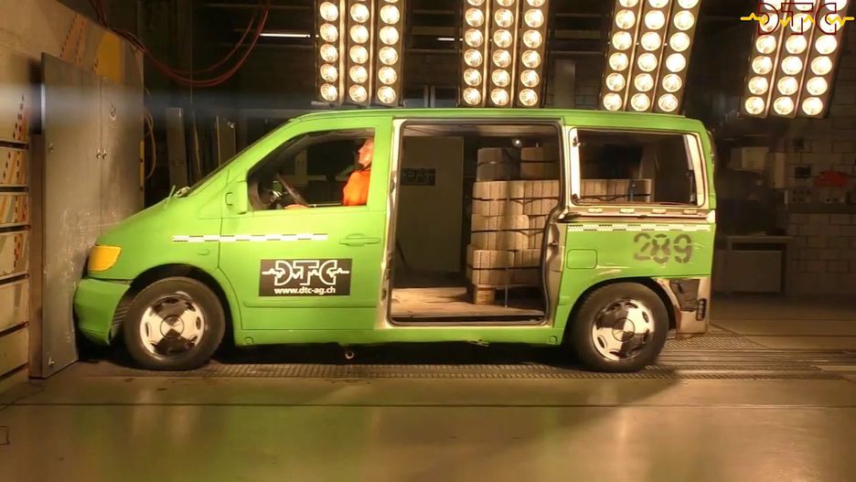 Samochód biorący udział w teście został załadowany betonowymi kręgami o wadze 770 kg, umieszczonymi na palecie tuż za przednimi fotelami. Ładunek został zabezpieczony cienkimi taśmami transportowymi. Następnie vito rozpędzone do 50 km/h uderzyło w przeszkodę. Choć samo auto nie ucierpiało znacząco, w kabinie rozegrał się prawdziwy horror.