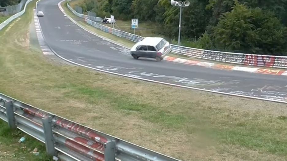 Czy to największy szczęściarz na Nürburgringu? Daihatsu cuore cudem się nie przewróciło