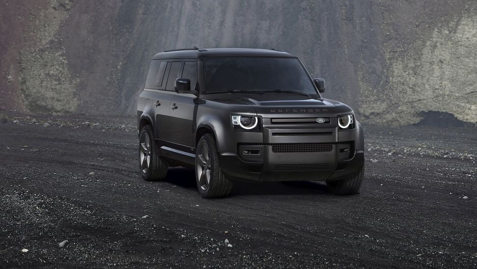 Auto dyskretnie akcentuje, że jest wyposażone w najmocniejszy wariant napędowy. Defender 130 V8 dostępny jest wyłącznie w kolorach Carpathian Grey lub Santorini Black. Ma cztery rury wydechowe, odsuwany dach panoramiczny z czarnym, kontrastowym pokryciem, znaczki zewnętrzne V8, reflektory Matrix LED, przyciemnione światła tylne, przyciemniane szyby i 22-calowe felgi aluminiowe w odcieniu Satin Dark Grey.