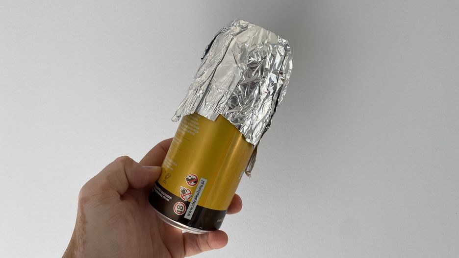 Jeśli pijasz napoje w puszkach, to taki pojemnik dostaniesz gratis, a można go używać latami. Ja dodałem jeszcze kawałek folii aluminiowej, który służy za przykrywkę otworu. Nadanie mu odpowiedniego kształtu i traktowanie jako przykrywki sprawia, że też może posłużyć bardzo długo.