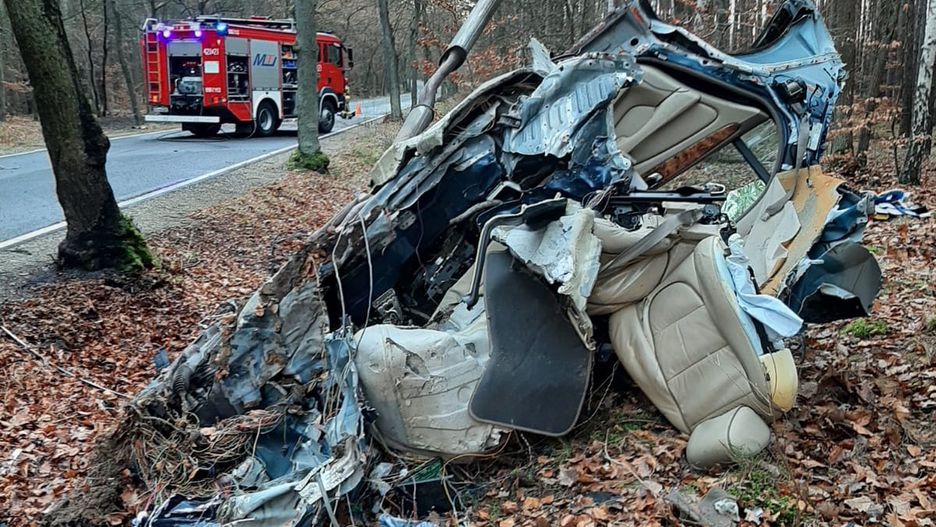 1 stycznia doszło do dramatycznego wypadku pod Świebodzinem. Zdjęcia straży pożarnej pokazują doszczętnie zniszczone auto. Dwie podróżujące nim osoby poniosły śmierć.
