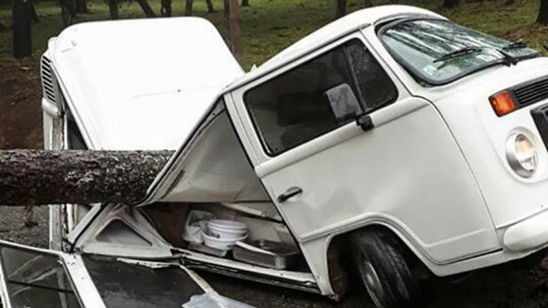 Samochód widoczny na zdjęciach to prawdopodobnie egzemplarz chłodzony wodą, należący do serii T2c wytwarzany między innymi w Brazylii jako Volkswagen Kombi do 2013 roku. Na pochodzenie tego wozu może wskazywać miejsce, w którym doszło do zdarzenia. Drzewo przewróciło się na oldschoolowo wyglądającego VW w miejscowości Rio Negrinho, na południu Brazylii. Do zdarzenia doszło 6 października około godziny 15:30 czasu lokalnego.