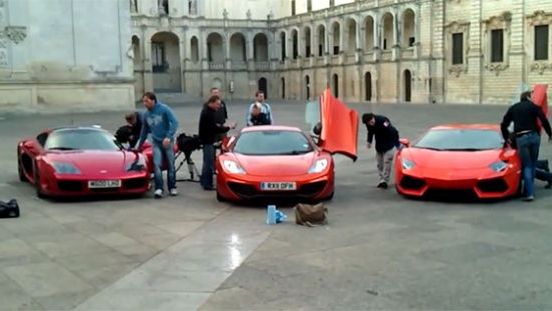Poza całym sztabem ludzi, którzy pracują nad tym żeby program Top Gear wyglądał tak jak wygląda, w mieście Lecce na południu Włoch, pojawiły się także trzy supersamochody - Noble M600, McLaren MP4-12C oraz Lamborghini Aventador.