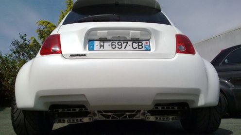 Oprócz ciekawego układu napędowego, Atomik Cars proponuje również pakiet dość kontrowersyjnych dodatków stylistycznych. Przedni zderzak zmienił się nie do poznania, niepotrzebna już atrapa chłodnicy została całkowicie zabudowana a poszerzone nadkola kryją lekkie obręcze w miedzianej tonacji, przypominające swoim wzorem te, znane z torów kartingowych. Wszystkie dodatkowe elementy nadwozia wykonano z włókien węglowych a na indywidualne zamówienie, firma z Paryża, jest gotowa dostarczyć całe karbonizowane poszycie w dowolnym kolorze lakieru.
