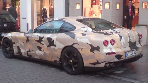 Chyba nie. Nie jestem pewien czy to faktycznie farba, czy po prostu spory kawał taśmy. Czarne felgi podkreślają militarny charakter nadwozia. Ferrari stoi "gdzieś w Niemczech" tylko takie informacje udało się uzyskać. Niezbity dowód na to, że niekiedy kamuflaż może paradoksalnie wyróżnić obiekt. Jedno jest pewne, drugiego takiego Scaglietti nie ma.[block position="inside"]10110[/block]