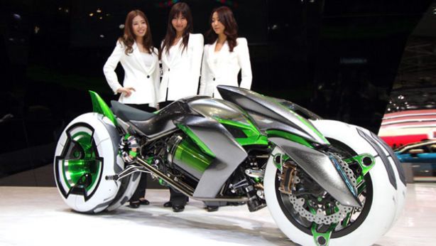 Producenci motocykli często przedstawiają futurystyczne projekty pojazdów po to, by wskazać na ich innowacyjność i przyciągnąć uwagę odbiorcy. Przykładem jest stoisko Kawasaki na Tokio Motor Show i koncepcyjny trzykołowiec – J Concept.