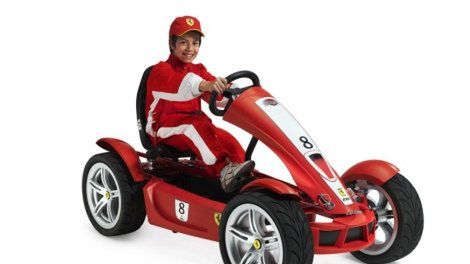 ... oczywiście jeśli cena nie gra roli, bo w końcu oto stoi przed Wami Ferrari. Model FXX Racer od Bergtoys kosztuje bowiem 499€. Za tą kwotę otrzymujemy podstawową wersję auta, którą wyposażono w 7dmio biegową przekładnię, pokładowy procesor, antypoślizgowe opony a nawet (!) pedał hamulca. To jednak nie wszystko - za cenę 1499€ możemy nabyć wersję "ekskluzif", która oprócz wyżej wymienionych części posiada również kubełkowy fotel, z czteropunktowymi pasami bezpieczeństwa, skórzane obicie kierownicy, większe felgi oraz specjalny zestaw aerodynamiczny. Szczerze rzecz biorąc wątpię, że Bergtoys znajdzie wielu nabywców na swój sprzęt.. Wszakże za cenę 500€ można kupić normalne auto, ot chociażby TATA Nano.