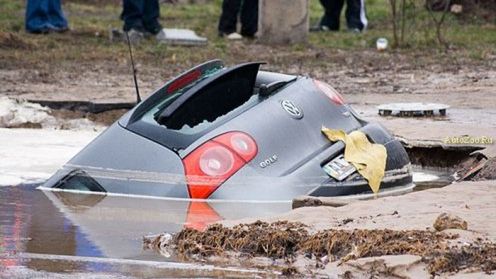 Na Ukrainie, w jakimś nieznanym nam miasteczku, pojawiła się bowiem dziura-gigant, która pożera samochody. Powstała ona najprawdopodobniej w skutek pęknięcia podziemnej rury, co zaowocowało zapadnięciem się asfaltu. Niestety VW Golf, który wówczas znajdował się nad miejscem powstania dziury został przez nią pochłonięty. Pasażerom udało się jednak uciec przez tylną szybę. Gorzej gdyby to było Ferrari, w którym tylne okno jest jedynie symboliczne...[block position="inside"]10165[/block]