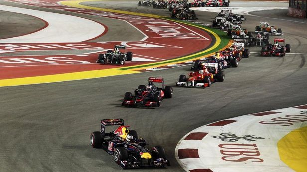 Wszystko rozpoczęło się o godzinie 14:00 polskiego czasu. Na starcie do rozgrywanego przy sztucznym świetle wyścigu o Grand Prix Singapuru na torze Marina Bay ustawiła się cała tegoroczna stawka z dwoma granatowymi bolidami Red Bulla na czele. Na pierwszym polu startowym stało auto Sebastiana Vettela, tuż obok na to aż zgasną czerwone światła czekał Mark Webber.
