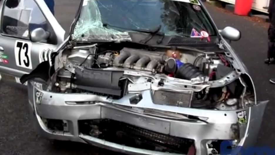 Cadwell Park Clio Pit wall crash HANS device