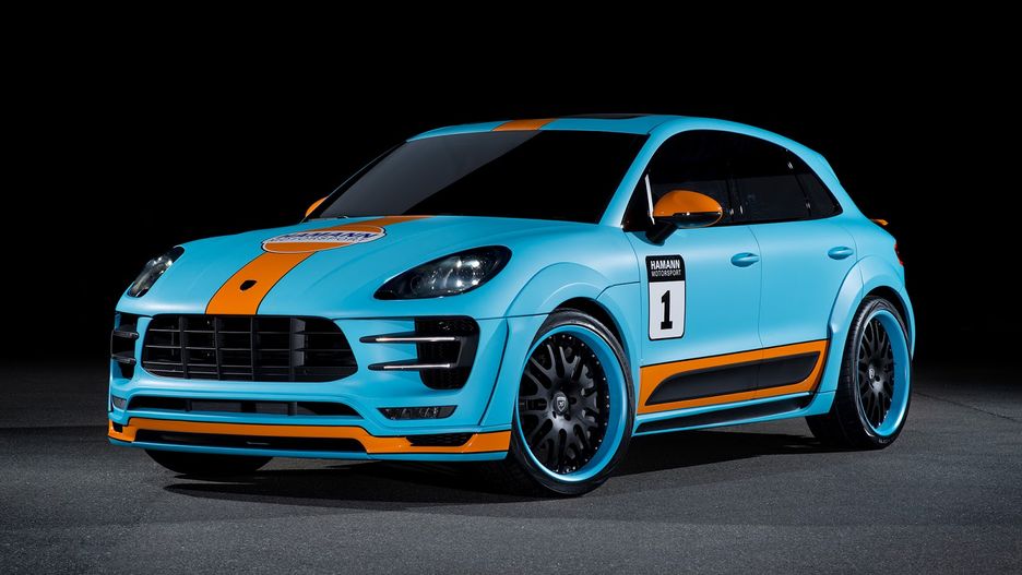 Hamann na targach samochodowych w Genewie przedstawił swój nowy pakiet tuningowy dla Macana S z silnikiem wysokoprężnym. Chociaż crossover Porsche jest ewidentnie pomalowany w barwach jednoznacznie kojarzonymi z samochodami startującymi pod skrzydła mi Gulfa, tuner pomija tę markę.