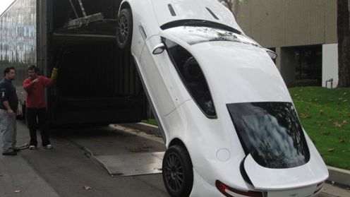 Biorąc pod uwagę to, że właściciel obdarzył swojego nowego Vantage tak silnym uczuciem, by przewozić go zabudowaną ciężarówką (i prawdopodobnie czekał niemały miesiąc na możliwość kupna) zdajecie sobie pewnie sprawę, jak "zdenerwowany" on lub ona musi być w tej sytuacji. Patrząc na pierwsze zdjęcie widzimy panów odpowiedzialnych za rozładunek auta, którzy również nie wykazują zbytniego zadowolenia. Cóż... wyrazy współczucia dla obu stron.