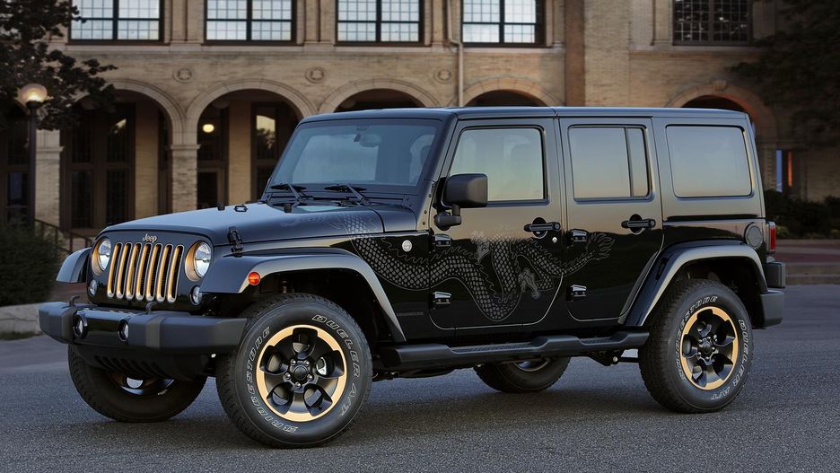 Jeep Wrangler Dragon Edition będzie wyróżniał się specjalnym czarnym malowaniem z brązowo-złotymi akcentami. Nazwa edycji specjalnej staje się jasna, jeśli spojrzy się na wizerunki smoków widniejące na karoserii terenówki.