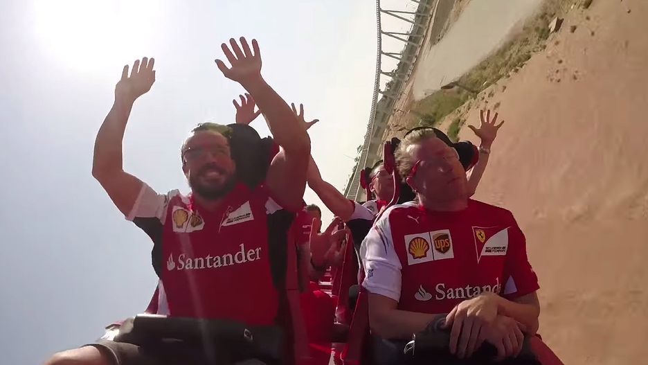 Każdy zespół stara się korzystać z wizerunku swoich kierowców F1 do reklamowania własnych produktów. Jest to część pracy objęta kontraktem. Na filmie widzimy dwóch kierowców Ferrari w parku rozrywki Ferrari World. O ile Alonso bawi się dobrze (albo dobrze udaje), to Kimi Räikkönen sprawia wrażenie najbardziej znudzonego pasażera kolejki górskiej, jakiego kiedykolwiek widzieliśmy.