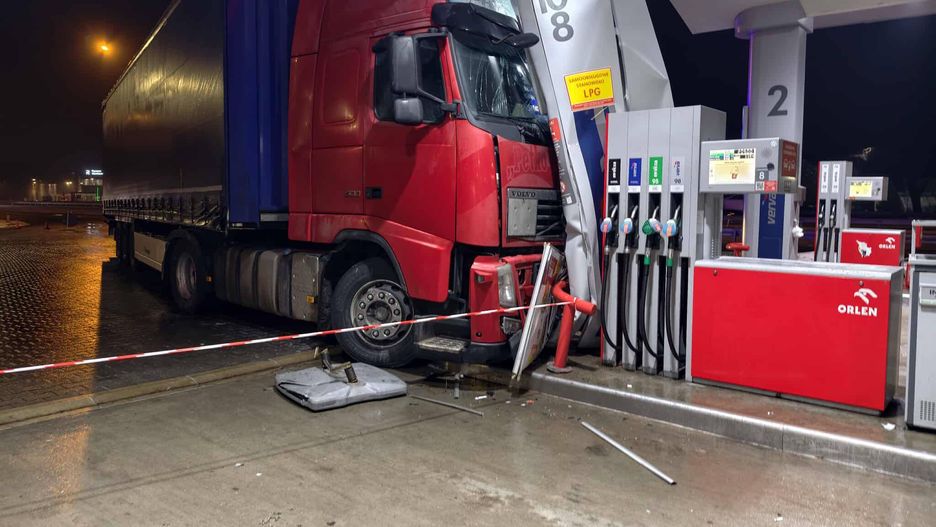Kolejna ciężarówka wjechała w stację paliw z powodu gołoledzi