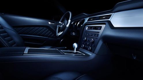 Tym razem zdjęcie odsłania prawie całą deskę rozdzielczą, konsolę środkową, kierownicę i boczki drzwi. Pisałem o tym poprzednim razem, kiedy to Ford ujawnił wygląd drążka zmiany biegów i kilku szczegółów na konsoli środkowej. Z jednej strony jestem zawiedziony tym, że designerzy nie wprowadzili jakichś znaczących zmian, pomimo promocji "rewolucji kucykowej", nowego logo na nowej atrapie, niewiele się jeszcze zmieni. Z drugiej strony natomiast środek prawie idealnie pasuje do wyglądu współczesnego muscle cara. Nie brakuje tutaj "odwołań" do legendy, np. trójramienna kierownica, daszki nad zegarami i nad miejscem, w którym zwykle jest schowek po stronie pasażera, czy głębokie tunele zegarów.