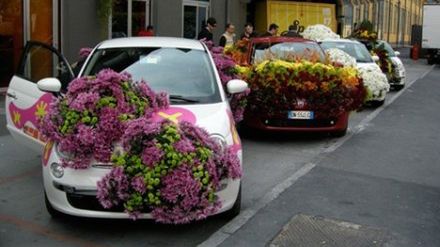 Oczywiście te ozdoby są całkowicie niepraktyczne, częściowo zasłaniają widoczność i przy większej prędkości i lekkim wietrze zostały by natychmiastowo zerwane z samochodów, no i oczywiście kwiaty na następny dzień już nie będą dobrze wyglądać, ale koncepcja była ciekawa.