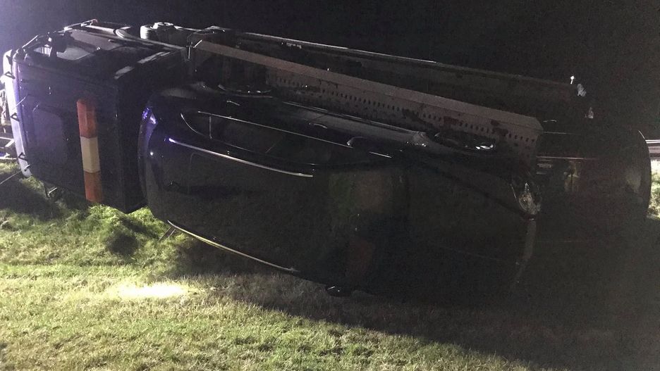 Kierowca lawety wiozącej łącznie cztery pojazdy - BMW, volvo i dwa bentleye bentaygi z niewiadomych przyczyn zjechał na pobocze autostrady A2 i uderzył w barierki ochronne, w wyniku czego ciężarówka wraz z kosztownym ładunkiem przewróciła się na bok.
