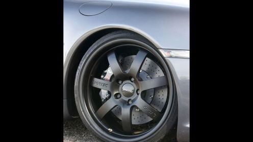 Samochód jest wyposażony ceramiczny układ hamulcowy z tarczami o średnicy 385 mm z przodu (8-tłoczkowe zaciski) i 350 mm z tyłu (4-tłoczkowe zaciski). Hamulce ukryte są za kołami z felgami o średnicy 20”. Na przednie felgi (o szerokości 9,0”) założono opony 255/30, zaś tylne, które mają 12,5”, wyposażone są w „gumy” 345/25. Gotowy do jazdy bolid waży 1585 kg.