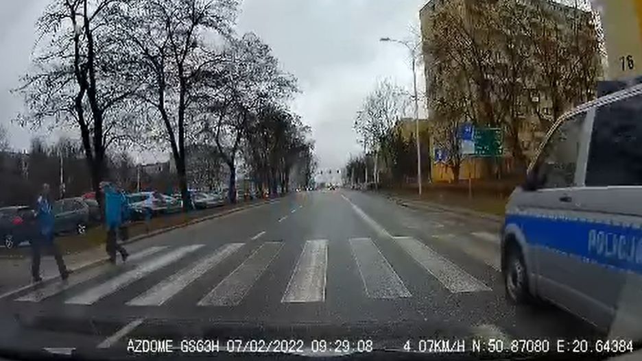 Na facebookowym profilu "W Kielcach" opublikowano nagranie, na którym kierujący radiowozem drastycznie łamie przepisy ruchu drogowego. Policyjny wóz nie zatrzymał się przed przejściem, kiedy inny kierowca przepuszczał pieszych. Kara wyniosła 1500 zł.