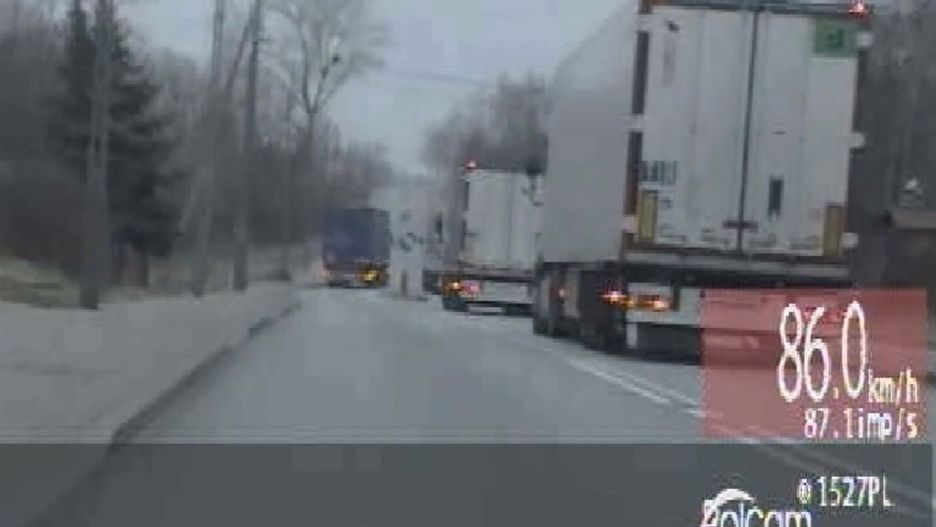 Policjanci z podlaskiej grupy Speed dawno nie widzieli czegoś podobnego. Patrolując krajową ósemkę, zauważyli tira wyprzedzającego kolumnę innych ciężarówek. Kierowca podczas wykonywania manewru złamał szereg przepisów. Jego wyczyny - uwiecznione na nagraniu - mrożą krew w żyłach.