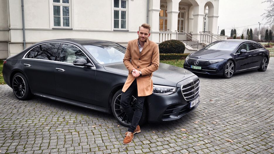 Muszę zacząć od pytania, które od razu nasuwa się na myśl. Który z tych samochodów robi większe wrażenie? Mam tutaj dwie klasyczne konfiguracje dla limuzyny. Oba samochody są w ciemnym kolorze, z czarnymi szybami itp. Jednak sam odbiór tych aut jest już nieco inny. Patrząc na Klasę S, spodziewacie się, że raczej ze środka nie wysiądzie byle kto, tylko człowiek odpowiedzialny za finanse, wasze finanse. Z EQS'em jest zupełnie odwrotnie. Tutaj raczej nie będziecie uciekać na sam widok tego auta, bojąc się o własne oszczędności. Krótko mówiąc, wzbudza zaufanie.