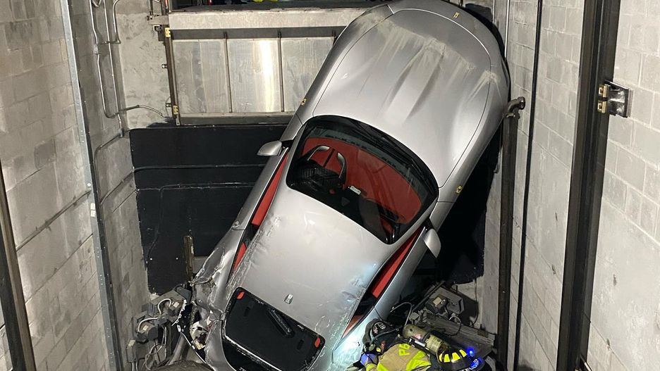 Jak donosi lokalny oddział straży pożarnej, z niewyjaśnionych dotąd przyczyn luksusowe coupe wjechało do szybu windowego, podczas gdy winda znajdowała na innym piętrze. Auto spadło około 4,5 m, uderzając tyłem o ziemię, zahaczając przodem o górną krawędź bramy i niszcząc podwozie. Wskutek uderzenia doszło do rozszczelnienia zbiornika z paliwem, a wyciek w pobliżu instalacji elektrycznej windy groził pożarem. Wezwani na miejsce strażacy musieli najpierw odłączyć prąd w salonie Ferrari i zneutralizować rozlaną benzynę.