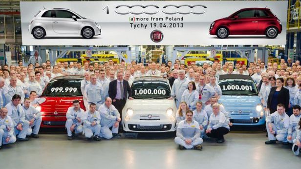 Dzisiaj, z polskiej linii produkcyjnej zjechał egzemplarz „Pięćsetki" o numerze 1 000 000. Jubileuszowa „Pięćsetka" to wersja sportowa Abarth 500 w kolorze białym, wyposażona w silnik turbo o pojemności 1,4 l o mocy 135 KM. Milionowa „Pięćsetka" trafi na rynek włoski, podobnie jak samochód o numerze 999 999, który również pojedzie do Italii. Będzie to Fiat 500 w wersji 1,3 MultiJet Sport, w kolorze czerwonym „corsa". Samochodem o numerze 1 000 001 jest uroczy kabriolet Fiat 500C w wersji 1,2 Lounge w kolorze niebieskim, który trafi za naszą zachodnią granice do Klienta w Niemczech.