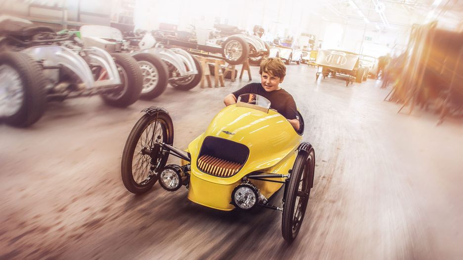 Brzmi poważnie. Nic dziwnego, gdyż nie jest to chińska, plastikowa zabawka, która rozpadnie się po kilku miesiącach, ale ręcznie wykonany pojazd, który w kluczowych kwestiach nie różni się znacząco od pełnowymiarowego EV3. W zasadzie jest to jego mniejsza, dziecięca wersja, wyprodukowana ręcznie w warsztacie Morgana, w angielskim Malvern Link.