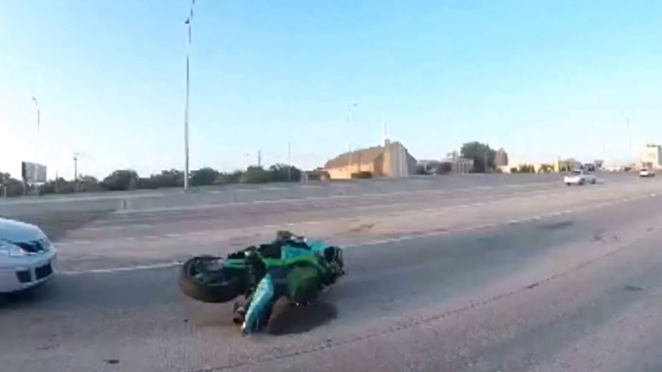 Dallas streets motorcycle getting hit by car