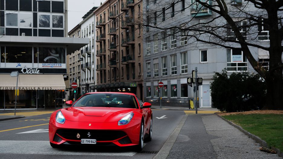 Chcąc spędzić więcej czasu w moim ulubionym (jak na razie) mieście, przyjechałem do Genewy w niedzielę po południu. Szybkie zakwaterowanie i w miasto. Pierwsze kroki oczywiście pod Four Seasons Hotel. Po drodze na przywitanie bez szału ale zawsze miło zobaczyć - F12 Berlinetta w tradycyjnym konfigu .