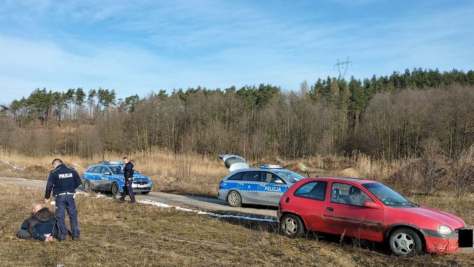 W pewnym momencie mężczyzna zjechał w drogę gruntową, kierując się w stronę Lipna. Na miejsce wezwano posiłki. W końcu zdesperowany kierowca, widząc, że nie odjedzie daleko, zaczął uciekać pieszo. Po chwili był już w kajdankach.