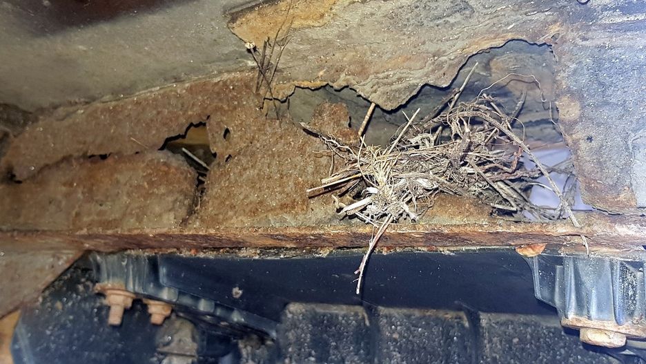 Naczepa tak zardzewiała, że ptaki uwiły gniazdo. Przewoził nią ciężki ładunek