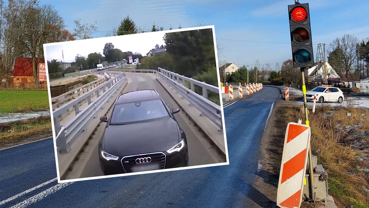 W związku z tym lekcji postanowił mu udzielić kierowca ciężarówki. Na opublikowanym filmie widać zresztą, jak uczestnik ruchu mija sygnalizator w związku z nadawanym zielonym sygnałem świetlnym i wjeżdża na zwężony odcinek. Po kilkunastu metrach natrafia na jadące w przeciwnym kierunku audi. Droga jest za wąska, by pojazdy mogły się wyminąć, dlatego kierowca niemieckiego kombi musi wycofać na sam początek remontowanego fragmentu.