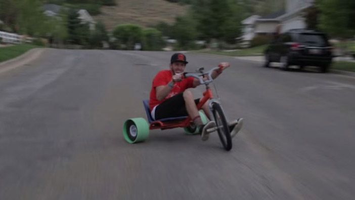 Drift takim pojazdem teoretycznie jest bezpieczny bo trudno małym rowerkiem osiągnąć duże prędkości. Świetny pomysł na dobrą zabawę, ale jednak robienie tego na ulicy może zakończyć się źle. Ten drifter i tak miał dużo szczęścia...