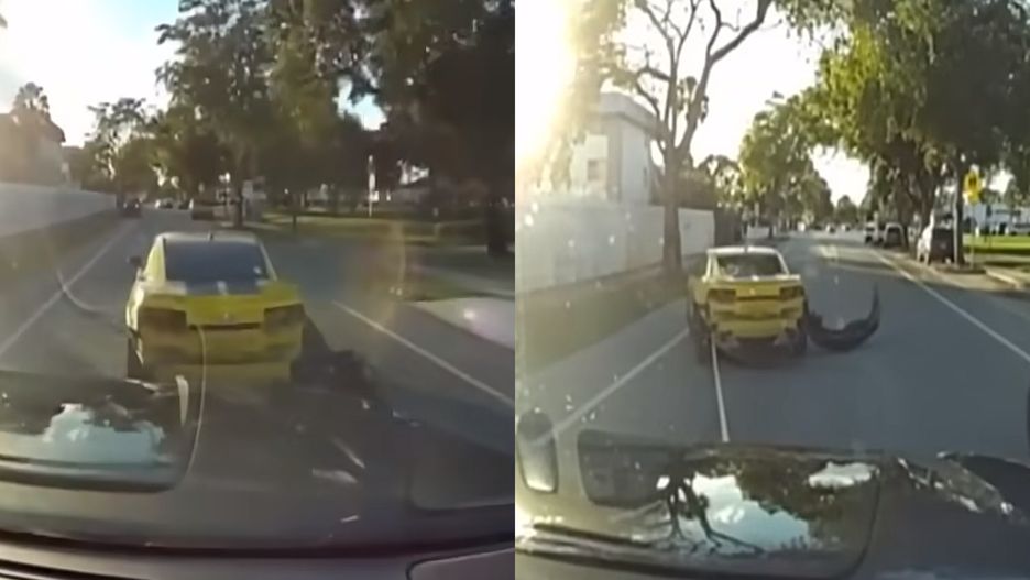 Na nagraniu z kamery pokładowej w radiowozie widać żółte camaro, które ma problemy z utrzymaniem się w drodze. Uciekający nastolatkowie uderzają nawet w ogrodzenie jednej z posiadłości i urywają przy tym tylny zderzak samochodu. Pozwala to policjantom na podjechanie do camaro i uderzenie go w tył.