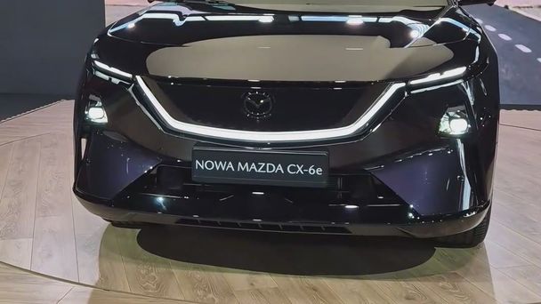 Na pierwszy rzut oka można poznać, że to Mazda. Wprawne oko zauważy jeszcze specjalny wlot pomiędzy maską a grillem lub słupki C ukształtowane tak, by "przepuszczały" powietrze sunące po szybach. No i CX-6e ma cyfrowe lusterka…