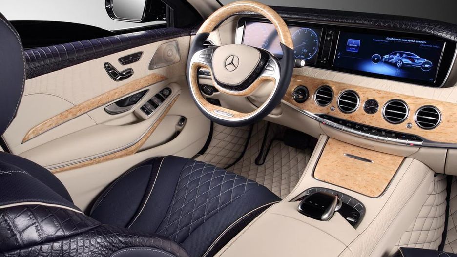 Rosyjski TopCar zmodyfikował wnętrze limuzyny. W kabinie dominują dwa kolory: beżowy i granatowy. Do wykończenia użyto m.in. skóry krokodylej i Nappa.