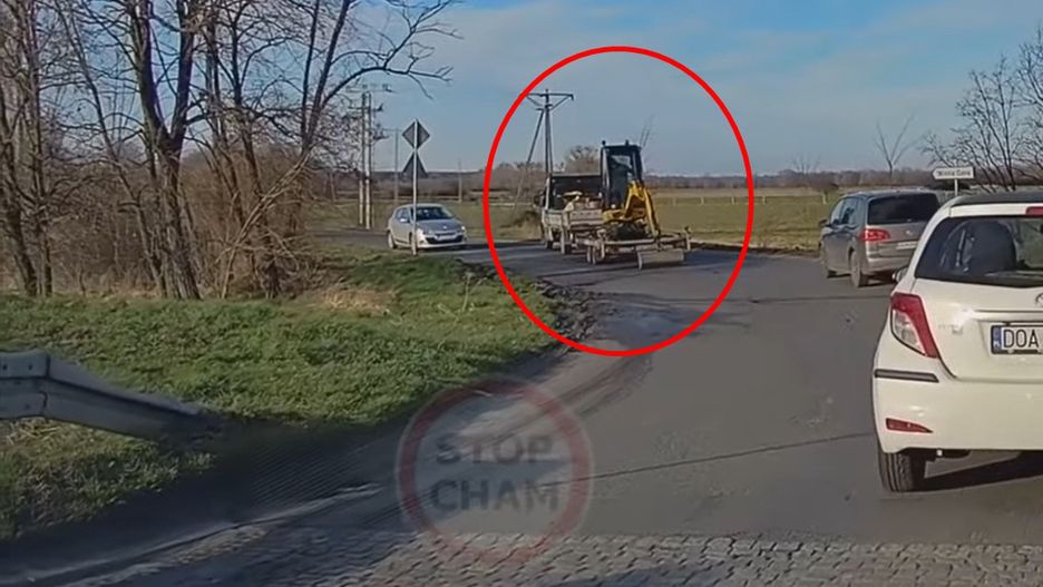 Niecodzienną sytuację nagrał internauta, który wysłał wideo opublikowane na kanale Stop Cham. Kierowca pojazdu z lawetą "przełączył się" na napęd koparką.