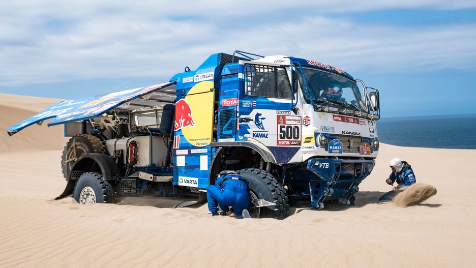 W kategorii ciężarówek Dmitrij Sotnikow wygrał wczorajszy oes i to on prowadzi w klasyfikacji generalnej. Kierowca Kamaza wyprzedza o 26 min. Eduarda Nikołajewa. Ten utknął wczoraj na wydmach z takimi kierowcami samochodów jak Carlos Sainz, Cyril Despres i Bernhard ten Brinke, przez co stracił prowadzenie. Załoga Gerard de Rooy, Moisès Torrallardona, Darek Rodewald zajęła wczoraj trzecie miejsce na etapie i tę samą pozycję ma w klasyfikacji generalnej.
