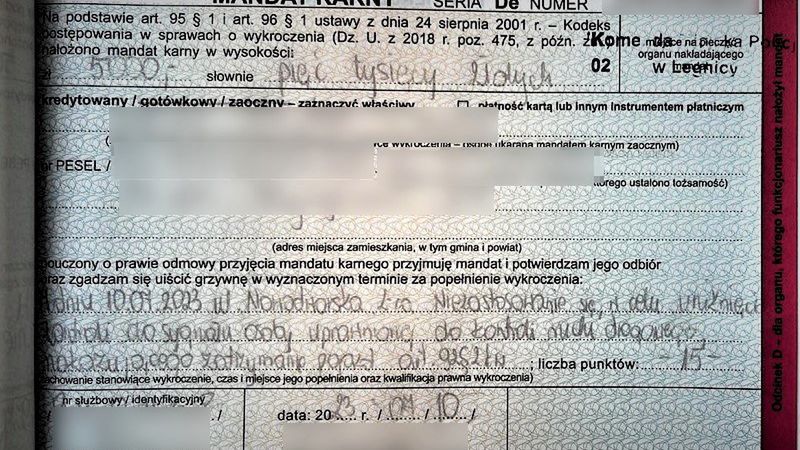 Pięć tys. zł mandatu i 15 punktów. Na tym nie koniec kar dla kierowcy