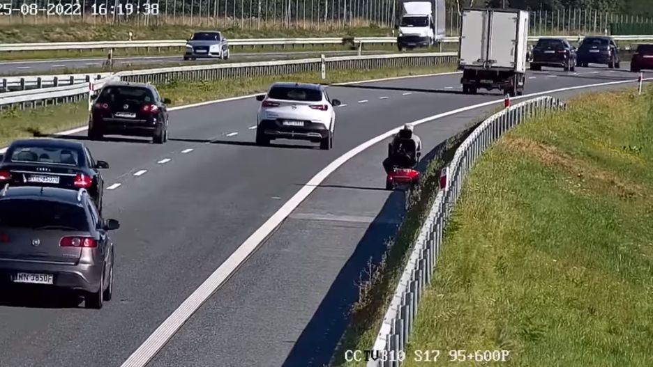Do zdarzenia doszło w czwartek, 25 sierpnia po godz. 16. Wyczyn 59-latka został zarejestrowany monitoringiem GDDKiA. Nagranie znajdziecie poniżej: